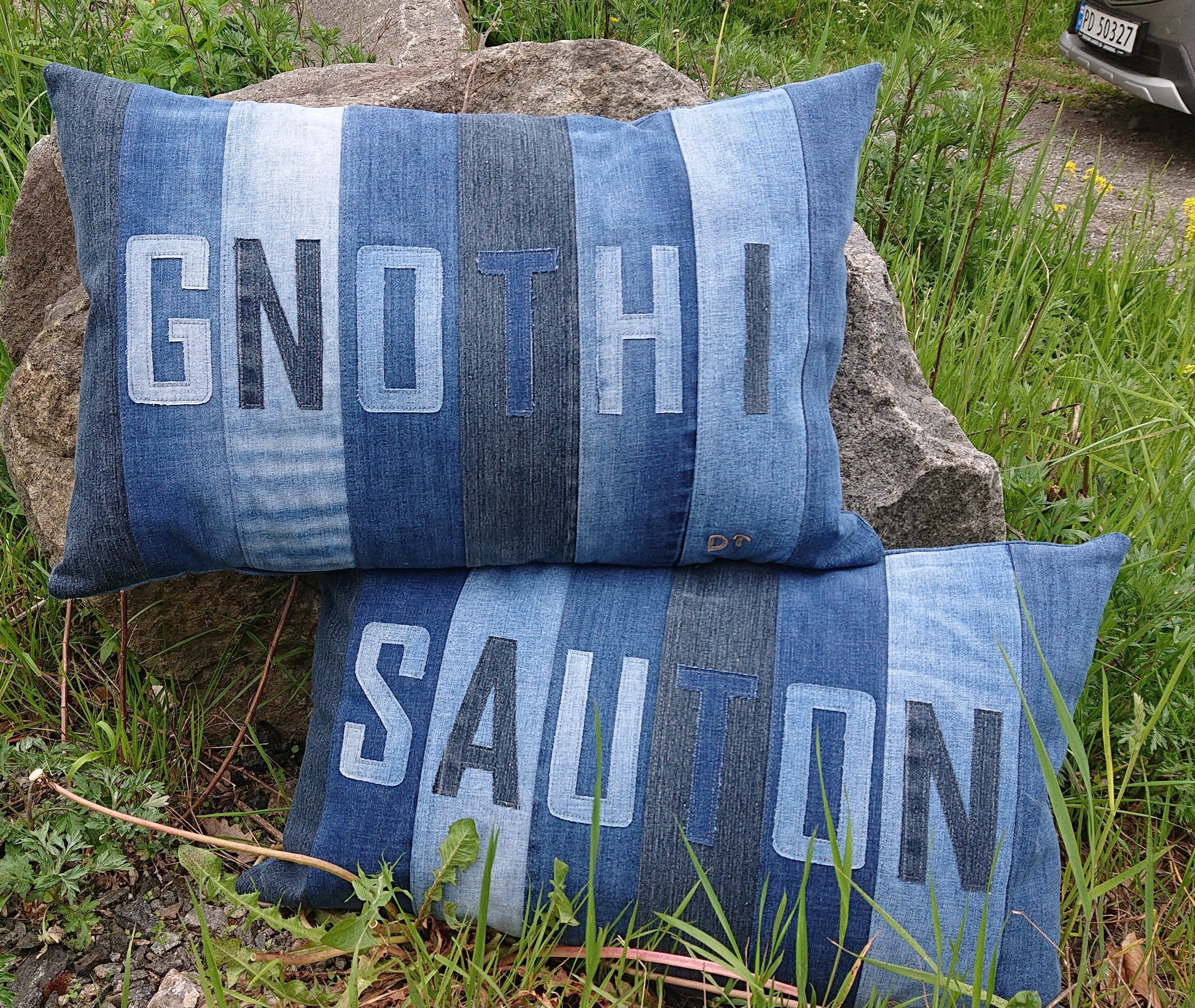 2 stk puter selges som par. GNOTHI SAUTON sa Sokrates. Flotte i sofaen som "ice breaker " når man får besøk. Syntetiske innleggsputer følger med. Str 40 x 60 cm. Vask 40 grader.